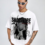 Romwe men camiseta de algodon con estampado, de manga corta y cuello redondo para hombre, de moda para el verano