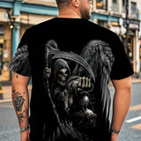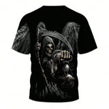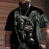 Camiseta con estampado de alas para hombres de talla grande, estilo oscuro unico, manga corta de talla grande