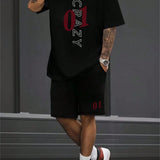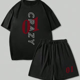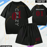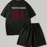 Conjunto de camiseta de cuello redondo de manga corta y pantalon corto con cordon en la cintura, de unicolor con texto y numero personalizados para hombre