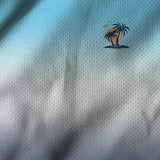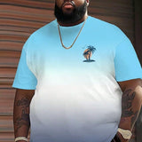 Camiseta de manga corta con grafico de palmeras, transpirable, en tono azul y blanco degradado, para hombre de talla grande, ¡ambiente festivo!