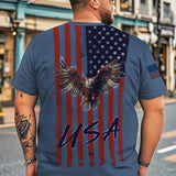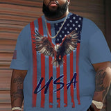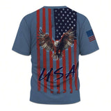 Camiseta de manga corta con estampado de estrellas y rayas, informal y elegante, con grafico de aguila para hombre de tallas grandes