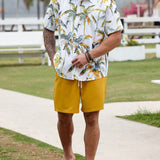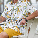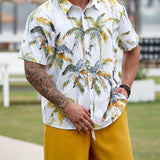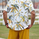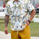 Manfinity rsrt conjunto casual de 2 piezas de camisa de manga corta con estampado de palmeras y pantalones cortos para hombres de talla grande
