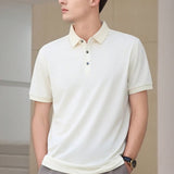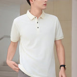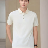 Camisa tipo polo de unicolor para golf para hombre, con cuello de botones hasta la mitad y bloques de color, camisa casual de negocios para regalo de novio