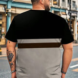 Camiseta de manga corta de hombre tallas grandes con estampado de letras en bloque de color negro, blanco y marron, informal