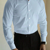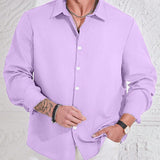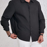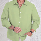 Manfinity homme camisa informal de manga larga con botones para hombres de talla grande, adecuada para el trabajo