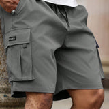 Manfinity homme pantalones cortos tipo cargo con cintura ajustable por cordon para hombres de tallas grandes