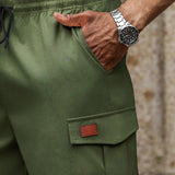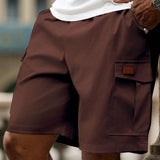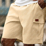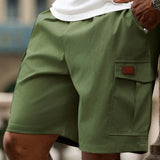 Manfinity homme shorts de talla grande de unicolor con bolsillos y cordon en la cintura, apropiados para el verano