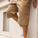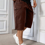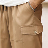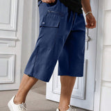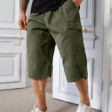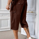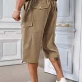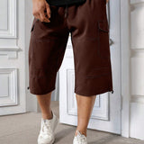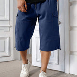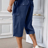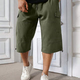 Manfinity homme pantalones capri informales de talla grande de unicolor con bolsillos y cordon en la cintura, para verano