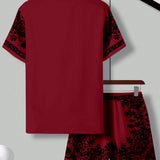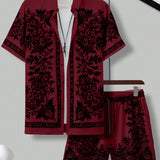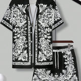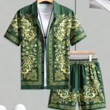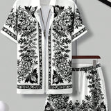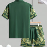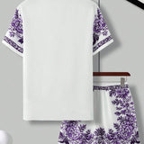 Manfinity homme conjunto de 2 piezas de camisa de manga corta con estampado floral y pantalones cortos para hombres de talla grande en verano