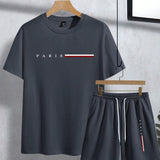 Manfinity homme conjunto de camiseta de manga corta y pantalon corto casuales con estampado de letras para hombre, de verano