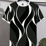 Manfinity homme camiseta de manga corta de cuello redondo con estampado grafico de color contrastante para hombre, verano