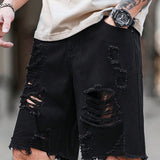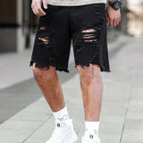 Manfinity legnd pantalones cortos de mezclilla casuales con bolsillos y dobladillo desgastado para hombres de talla grande
