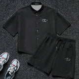Easevo conjunto de camisa de manga corta de tejido y pantalones cortos para hombre talla grande