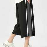 Pantalones rectos de talla grande de 7/10 de largo, corte recto con bordado, adecuados para el verano