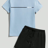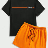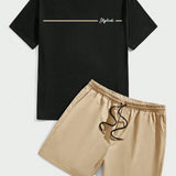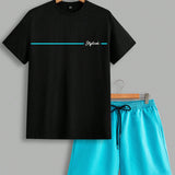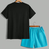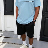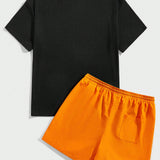 Manfinity homme conjunto de 2 piezas de talla grande para hombre, camiseta de manga corta negra y pantalones cortos rosados