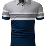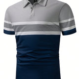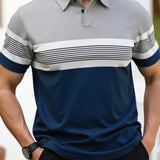 Manfinity homme camisa polo casual de manga corta a rayas para hombres de talla grande