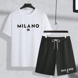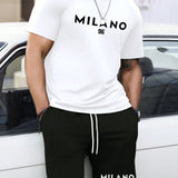 Manfinity homme conjunto casual de camiseta de manga corta con cuello redondo y grafico de letra talla grande talla para hombre, y pantalones cortos con cordon en la cintura