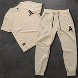 Manfinity homme conjunto de 2 piezas de camiseta y pantalon deportivo con cordon para hombre de talla grande, cuello redondo, manga corta, estampado, uso versatil para diario, nueva llegada del verano 2025
