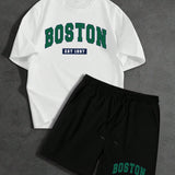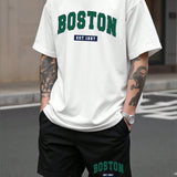 Manfinity homme camiseta de hombre talla grande [y versatil | juego deportivo de boston] - diseno suelto y sencillo, letras impresas de moda, tela comoda, facil de crear un estilo casual de calle. adecuado para uso diario y salidas deportivas, ¡muestra