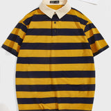 Manfinity urbanchill camisa polo para hombre con cuello a contraste a rayas, camisa casual urbana con medio boton, regalo para el novio