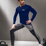 Manfinity sport corelite camiseta deportiva de manga larga con grafico de letras, estilo novio, para workout