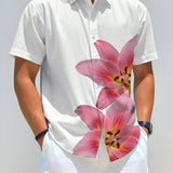 Camisa casual de manga corta con estampado floral y de botones para hombre