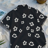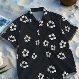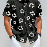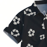 Camisa de manga corta casual de solapa única con estampado de margaritas para hombre