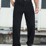 Jeans vaqueros casuales para hombre con decoración de remaches y color liso
