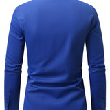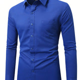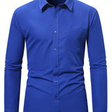 Camisa de manga larga casual/para ir al trabajo de unicolor con bolsillo para hombres