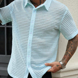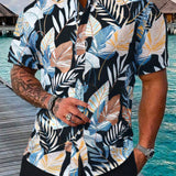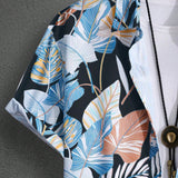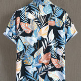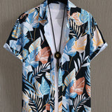 Camisa casual de manga corta con estampado de plantas tropicales para hombres