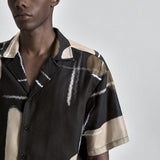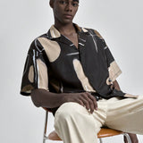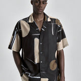 Camisa casual suelta con estampado geométrico para hombres, en tonos marrones